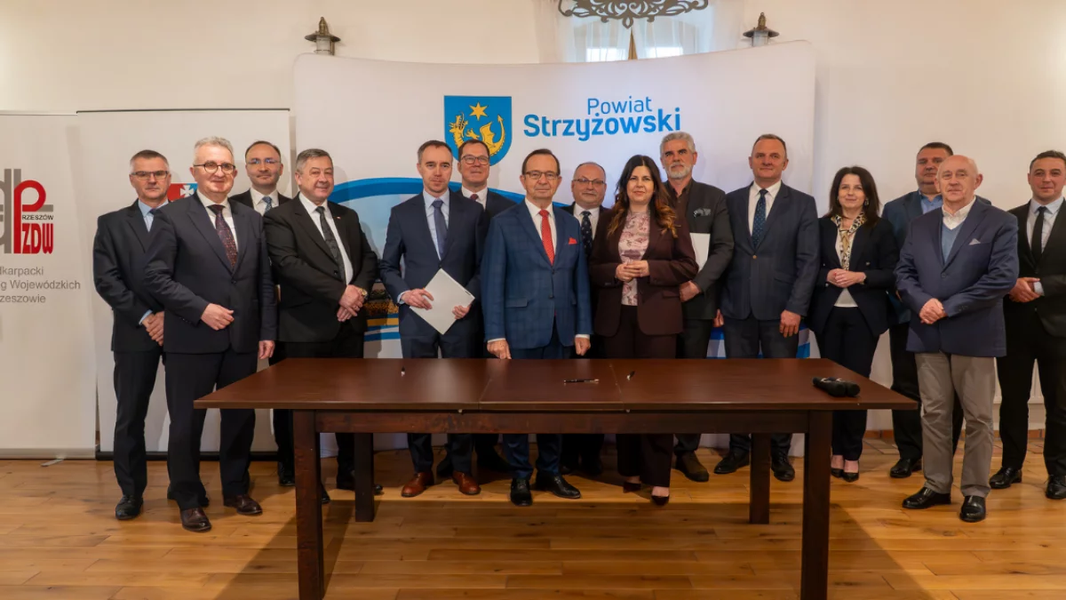 W uroczystym podpisaniu dokumentów wzięli udział m.in. marszałek Władysław Ortyl, starosta strzyżowski Robert Godek, radny województwa Jacek Magdoń oraz włodarze gmin, przez które przebiega trasa.