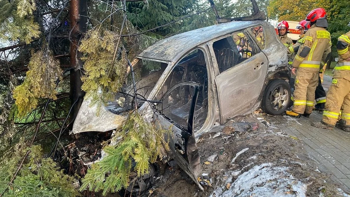 Samochód szybko stanął w płomieniach, jednak na szczęście jego kierowca zdołał o własnych siłach wydostać się wcześniej z pojazdu.
